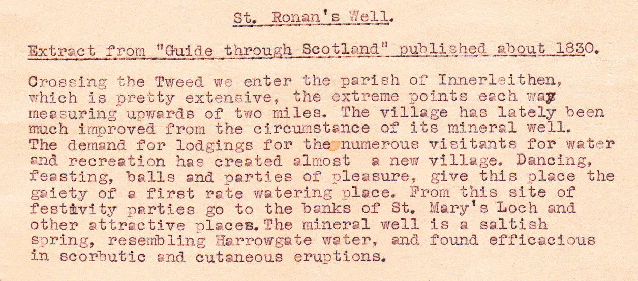 Robert Burns, noted in his journal that he had “visited Inverleithen, a famous Spaw”